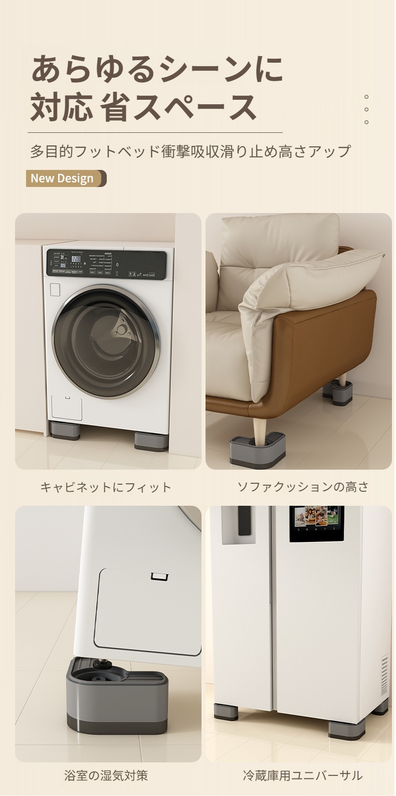 洗濯機ベース棚足パッド滑り止め耐衝撃防振ユニバーサルドラム冷蔵庫パッド特殊ブラケット取り外し可能